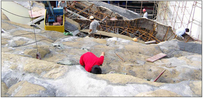 东部华侨城前广场GRC景观工程,位于华侨城大侠谷入口处,坐西向东成字母L型,南北方向长度为110M,宽为20M,东西方向亦为110M,宽20M,总占地面积为4000㎡ ,工程实际施工总面积为6027.895㎡(山体是凹凸三维形体),其中巨石面积为5031.065㎡ ,小瀑布面积为996.63 ㎡。