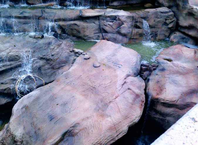 从都水景瀑布景观坐落于广东省从化市宁静的元宝山脚下,绿色丘林环抱四周。宁静致美。既名为“从都”,揣度其意大抵是对从容不迫的都市生活的向往,更符合现代人的需求。紧张的节奏的生活中寻求从容自得的生活。苏氏山水打造从都西地块特色水景瀑布景观工程也是顺应需求而生,制成令人神清气爽的假山瀑布。