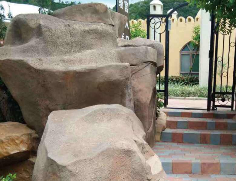 河源客天下中,苏氏山水主要为了创作的是生态仿木大门、桥梁仿木包装、主题墙面装饰、河道假山等。雕刻师们采用细腻的仿古仿木手法,在传神的造型基础上进行手工直塑造型,刻画出惟妙惟肖、难辨真伪的仿木雕刻构建和残墙主题装饰。走在客天下园里,举目可见造型逼真而富有客家文化气韵的仿木大门、桥梁护栏、河道山石。苏氏山水用其专业实力和工艺为客天下又一次打造出一座极具魅力的生态景观园。