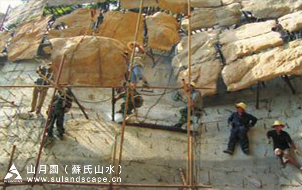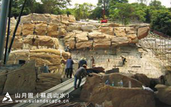 以上所列的南北叠石字诀,只是古代叠山匠师在假山造型施工中的一些典型手法,这些造型手法在实际施工中应灵活运用,切不可拘泥形式,刻意去追求。