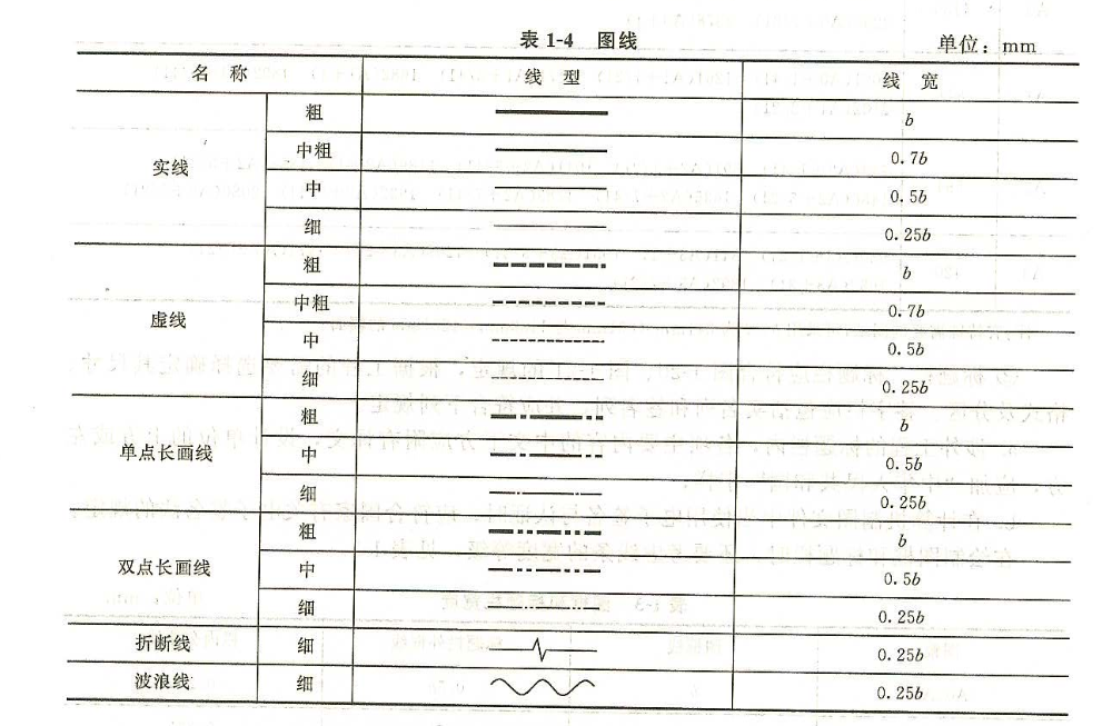 (2)图线庭园工程制图应选用的图线,见表1 4。